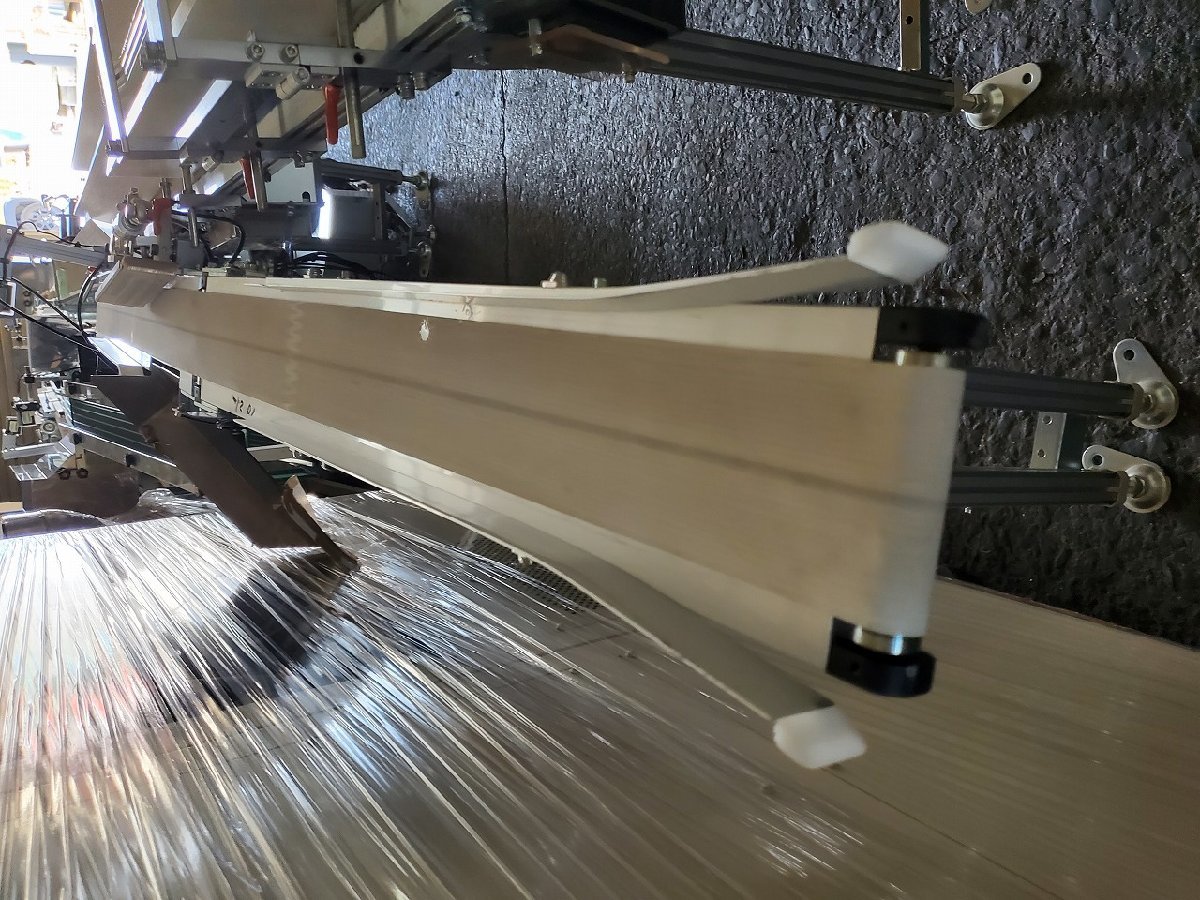 > c3A【棚神イ斉050726-4】10cm巾ベルトコンベアー 2m長さ位 脚付き 200V 50/60Hz MMX200VGCF304 マルヤス