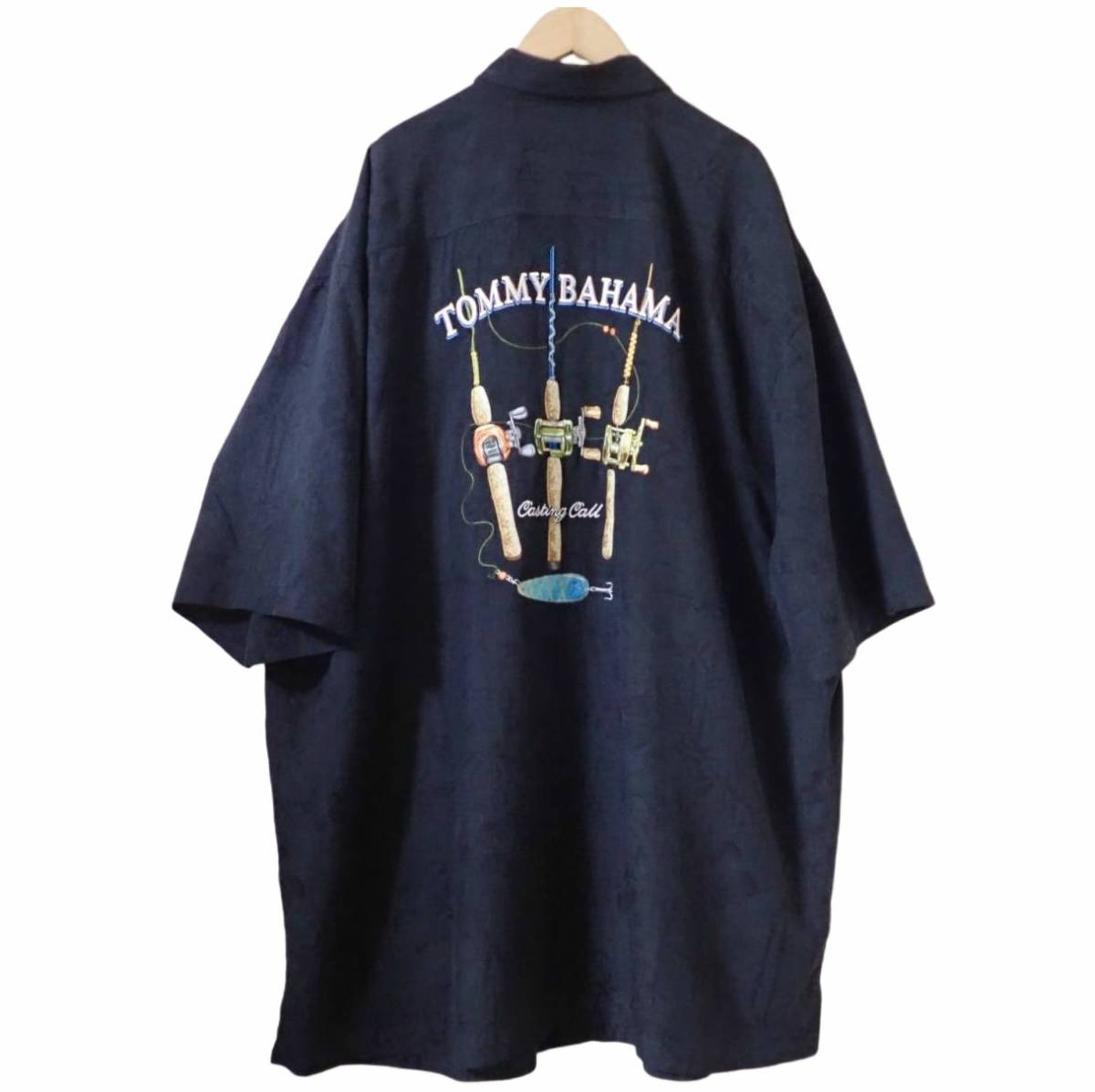 - 3303/美品Tommy Bahamaバック刺繍入り半袖アロハシャツ2XT●洗濯プレス済●ネコポス可●fishing rod 釣り竿ルアーリールオーバーサイズ古着