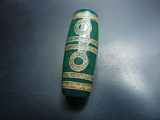 - ★西蔵至純天珠★XT9031 緑砂龍紋 四眼 特上級 29mm入手難