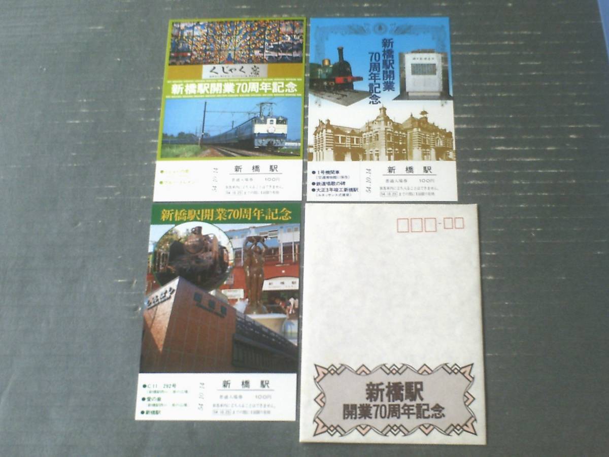 - 未使用【新橋駅開業70周年・記念入場券(袋付き・3枚入り)】昭和54年10月23日(東京南鉄道管理局)