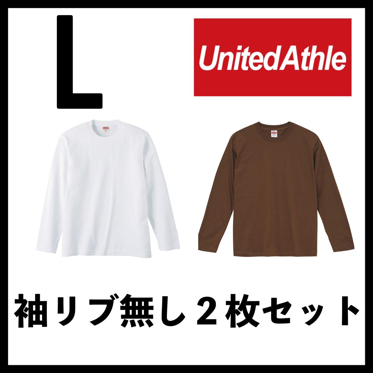 - 新品未使用 ユナイテッドアスレ 5.6oz 無地 袖リブ無し 長袖Tシャツ ロンT 白 ブラウン 2枚 Lサイズ United Athle ユニセックス
