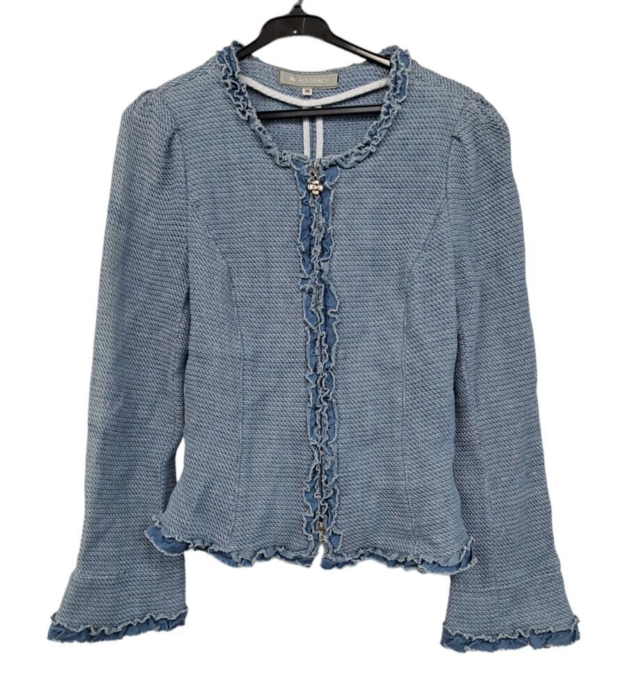> エムズグレイシー ジャケット ノーカラー カメリアジップ 水色 ライトブルー 38 カジュアル デニム M’SGRACY 【中古】
