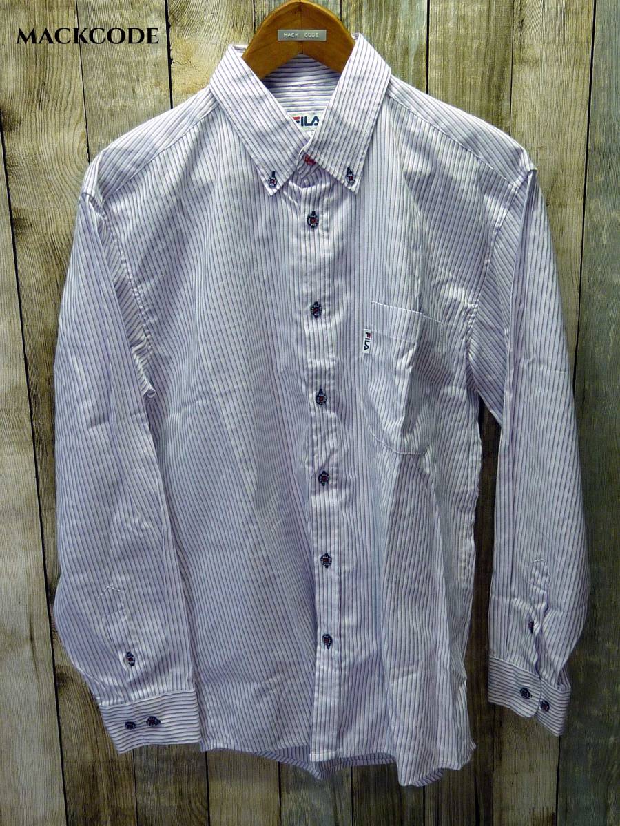 - 【y4973-I】送料270円~◆美品フィラ FILA ストライプ長袖ボタンダウンシャツ【L】◆