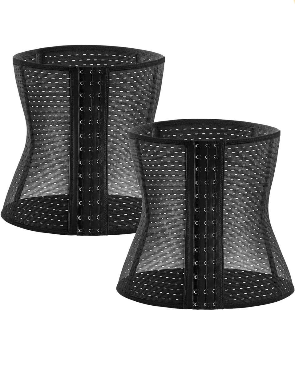 - コルセット ウエストニッパー ダイエット レディース【お腹引き締め・補正下着・美しい姿勢】産後 腰サポート くびれ メッシュ 2枚黒M