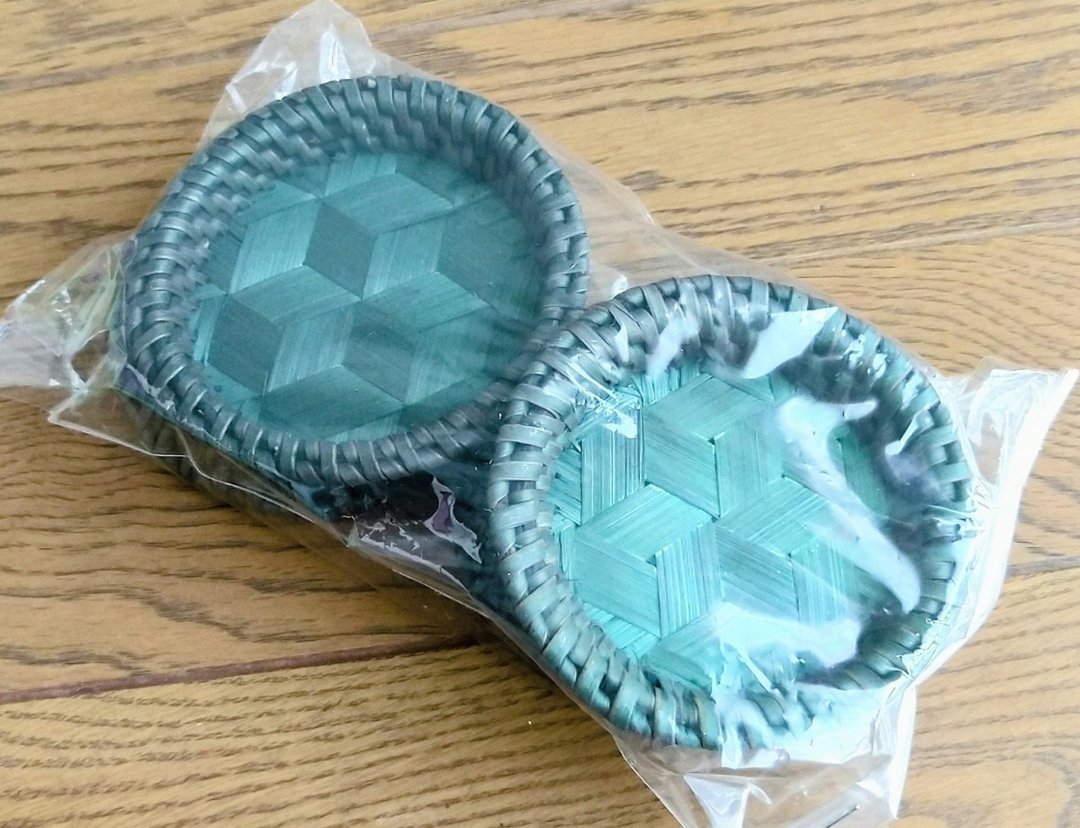 - バリ島/コースター☆フチ付きコースター☆バリ職人手作り☆4枚セット☆グリーン♪
