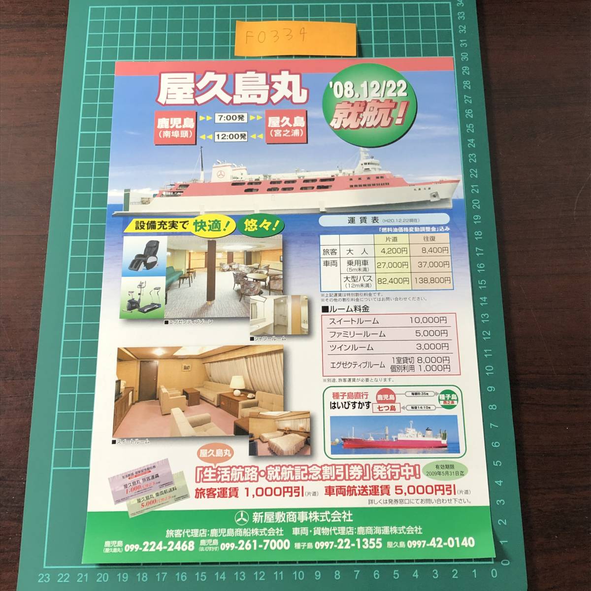 - 屋久島丸 新屋敷商事株式会社 鹿児島~屋久島 2008年12月22日就航 チラシ カタログ パンフレット 【F0334】