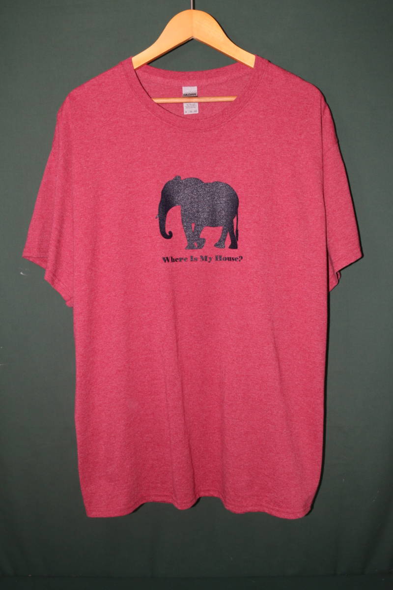 > アニマル Tシャツ ゾウ ヘザーカーディナル XLサイズ where is my house? 新古品