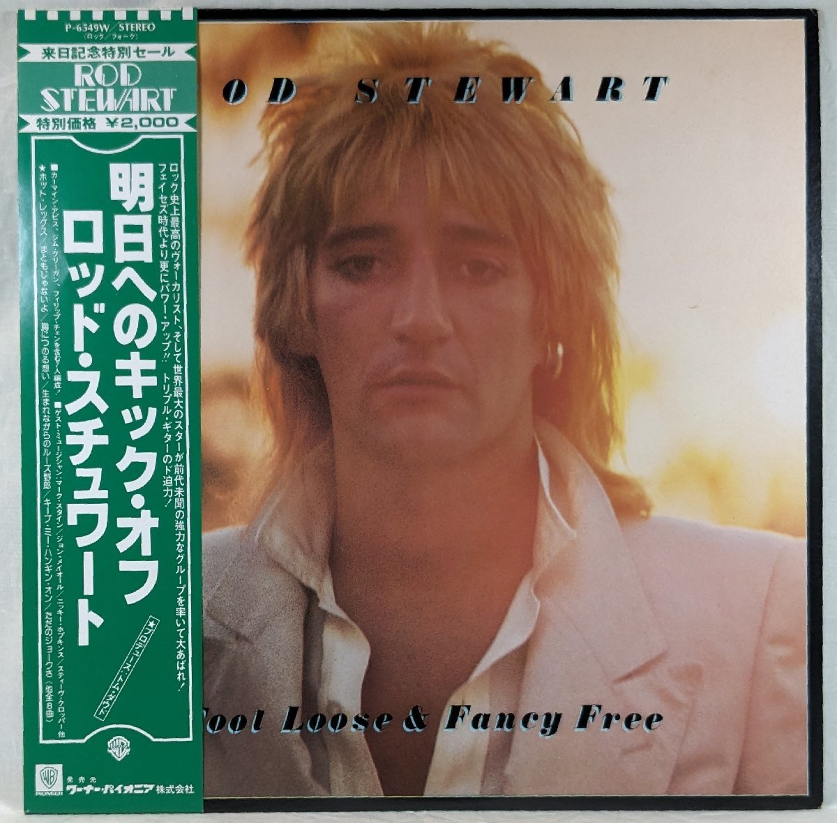 P-6549W WARNER Pioneer 中古LP「Foot Loose & Fancy Free / 明日へのキック・オフ」ROD STEWART / ロッド・スチュワート SIDE A1 hot legs / ホット・レッグス2 you're insane / ユーアーインセイン3 you're in my heart(the final acclaim) / 胸につのる想い4 born loose / ボーン・ルーズ SIDE B1 you keep me hangin' on / キープ・ミー・ハンギング・オン2 (if loveing you is wrong) I don't want to be right / イフ・ラヴィング・ユー・イズ・ロング3 you got a nerve / ユー・ガッタ・ナーヴ4 I was only joking / ただのジョークさ 盤質:大変良好ジャケット:良好緑帯付きライナー付き 送料は送料・配送についてをご覧ください。中古レコードに関してご理解のうえ入札ください