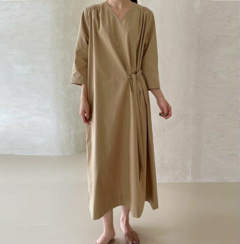 - 秋新作 ロングワンピース レディース マキシ丈 無地 長袖 aライン 体型カバー ロング ゆったり 大きいサイズ お洒落 シンプル