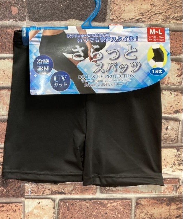- 送料無料!ひんやり爽快&サラッと快適&UVカット!1分丈レギンス(黒無地)1枚