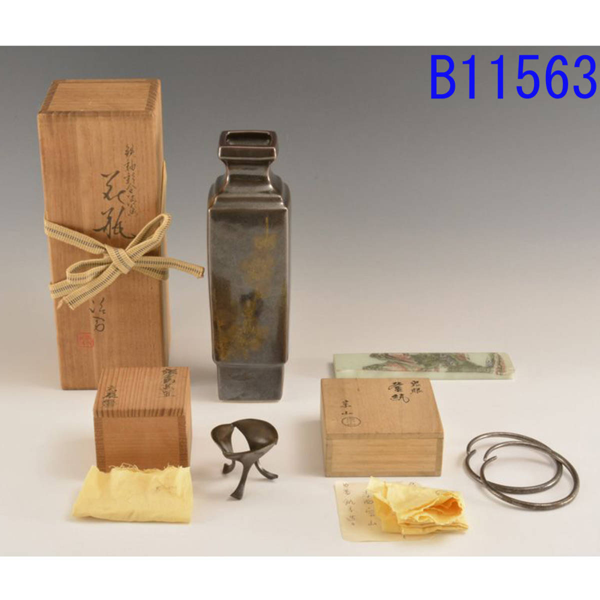 - B11563 焼物花瓶 蓋置他 4点セット:真作