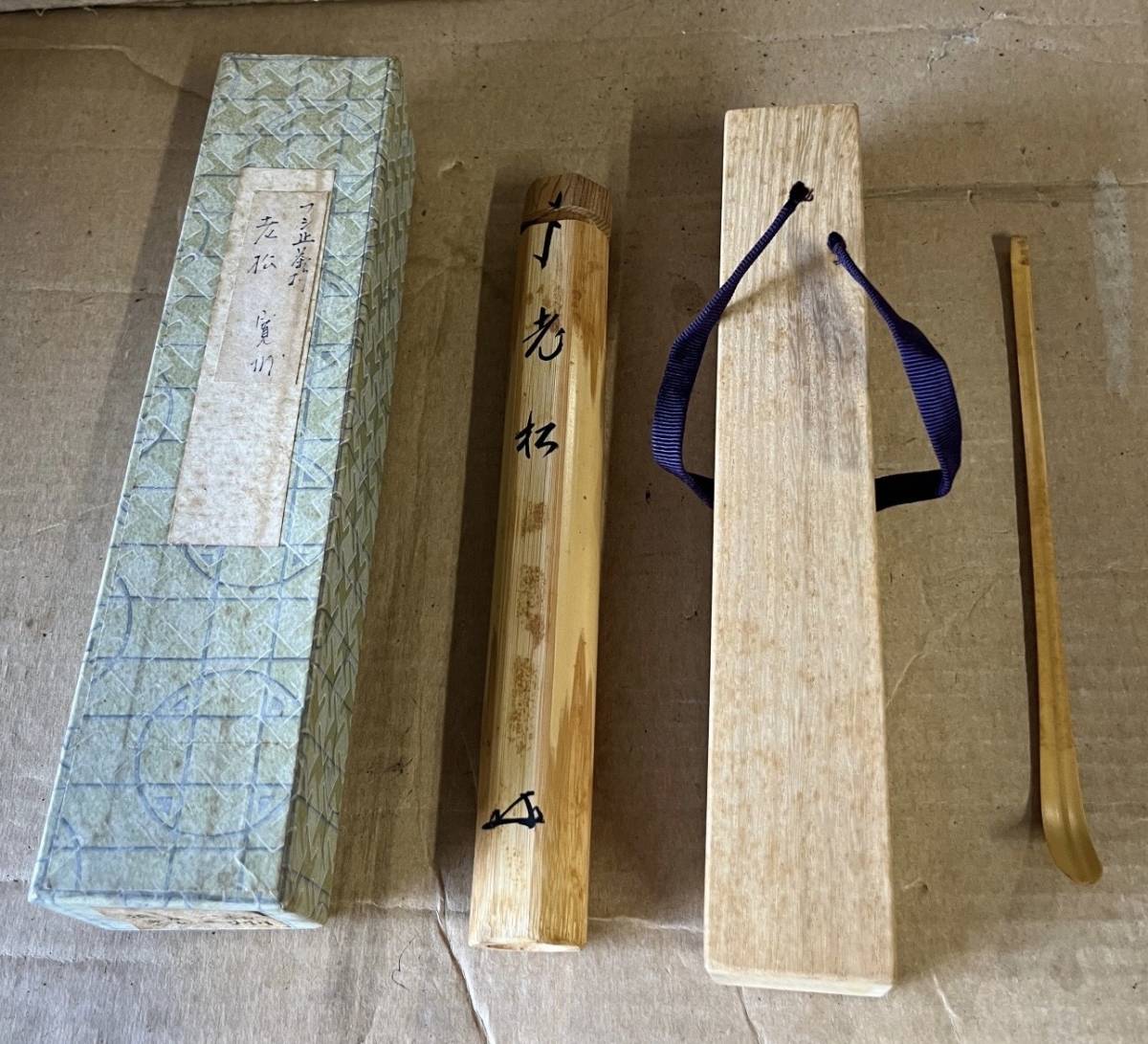- 【No.119】茶道具 茶道 フシ止茶灼 銘:寛州 老松 淡完作 作家物 工芸品 茶器 中古品