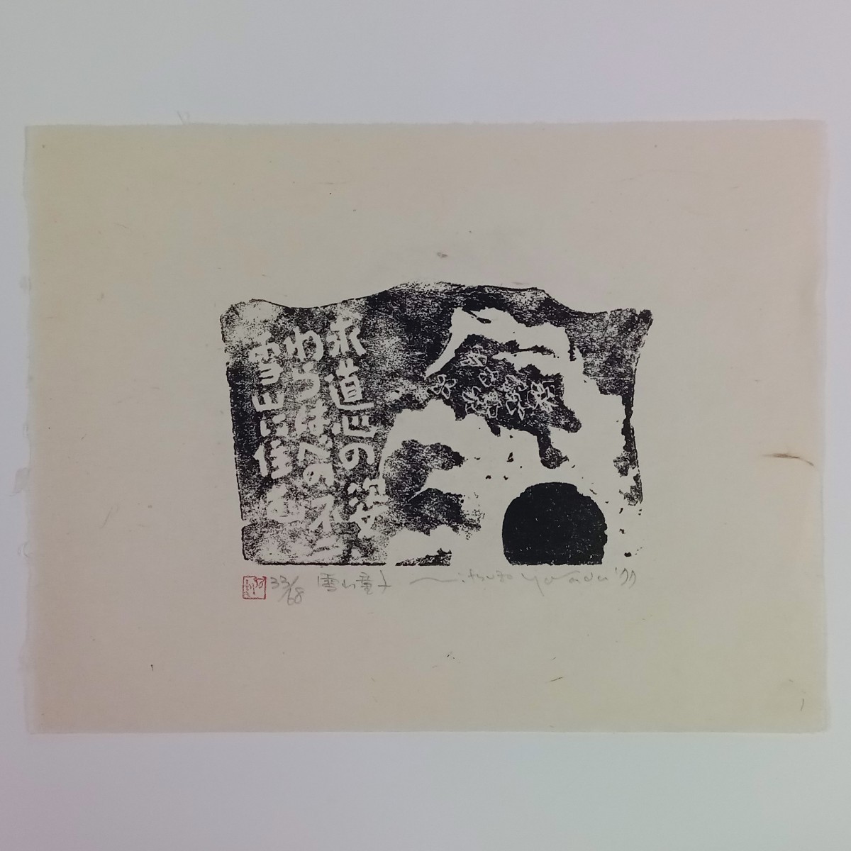 - ★山田光造★石刻版画★1977年「雪山童子」33/68★直筆サイン★ボストン美術館、シカゴ美術館、フリーア美術館、プロイセン美術館収蔵作家