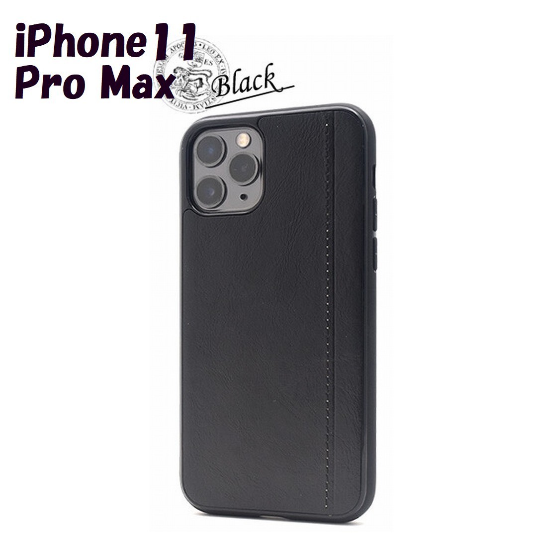 > iPhone11 Pro Max:合皮 レザー ステッチ 背面 ソフトケース★ブラック 黒