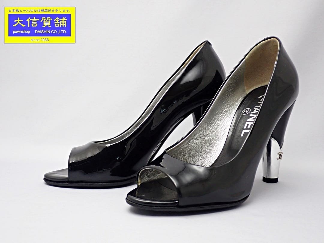 > CHANEL シャネル ヒール パンプス 36 エナメル ブラック G26955 中古B+ 【送料無料】 A-8087