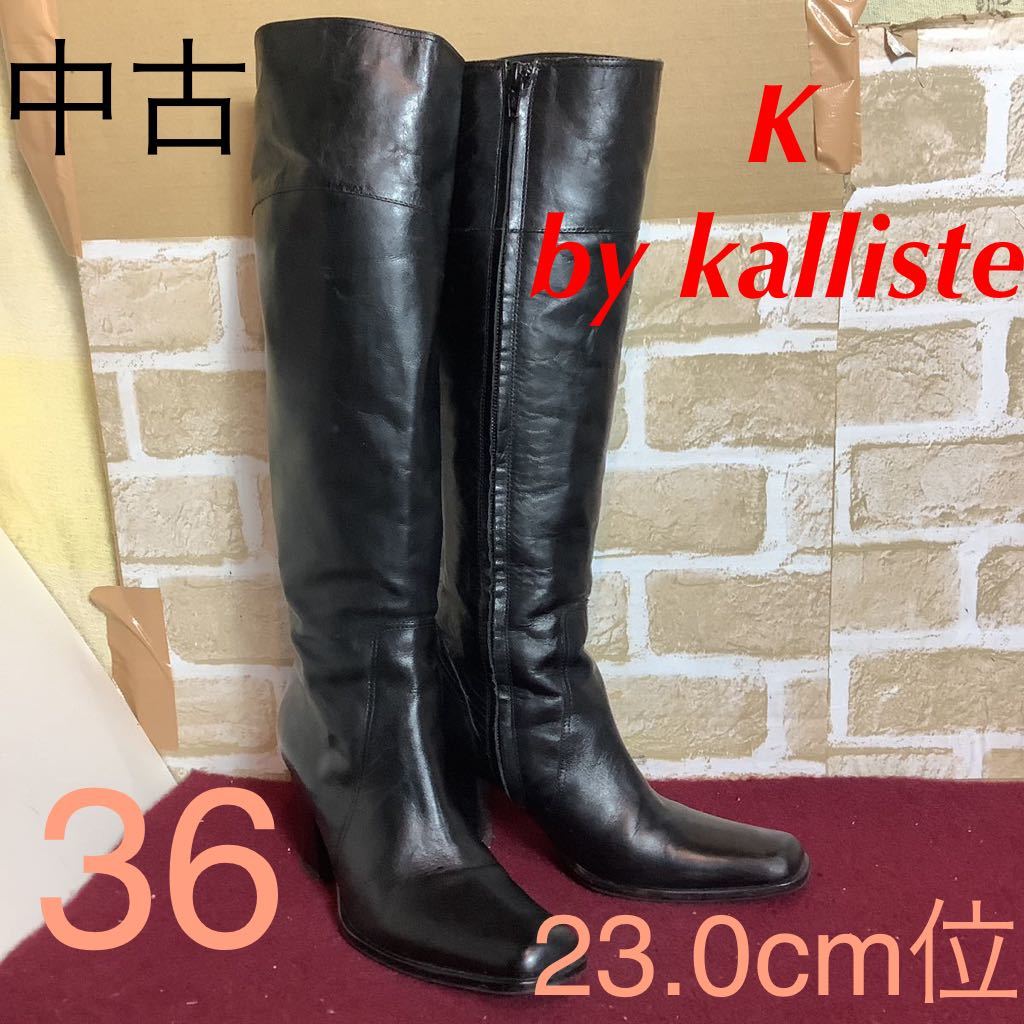 > 【売り切り!送料無料!】A-168 K by kalliste!ロングブーツ!36 23.0cm位!黒!ブラック!おしゃれ!天然皮革!本革!カリステ!中古!