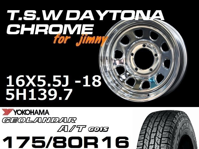 > 新型 ジムニー ホイール!TSW デイトナクローム 16X5.5J-18 GEOLANDAR A/T G015 175/80R16 タイヤセット JB64 JB23などに!