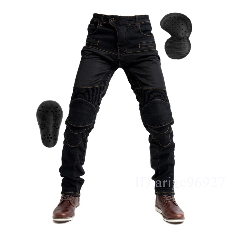 > H373★バイクパンツ メンズ ストレッチ素材 オールシーズン ライディングパンツ ライダースパンツ 上質腰プロテクター メッシュ 黒