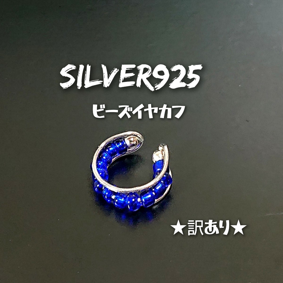 - 4352 SILVER925【1個売り】★訳あり★ビーズ イヤカフ シルバー925 ブルー 青 イヤーカフス 耳に挟むタイプ フープ ピアス ユニセックス