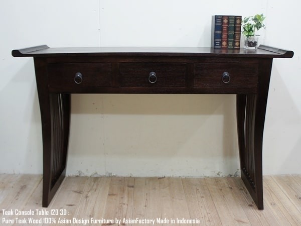 > コンソールテーブル3D 120cm DB ダークブラウン チーク無垢材 アジアン家具 木製 パソコンデスク 机 完成品 アンティーク風