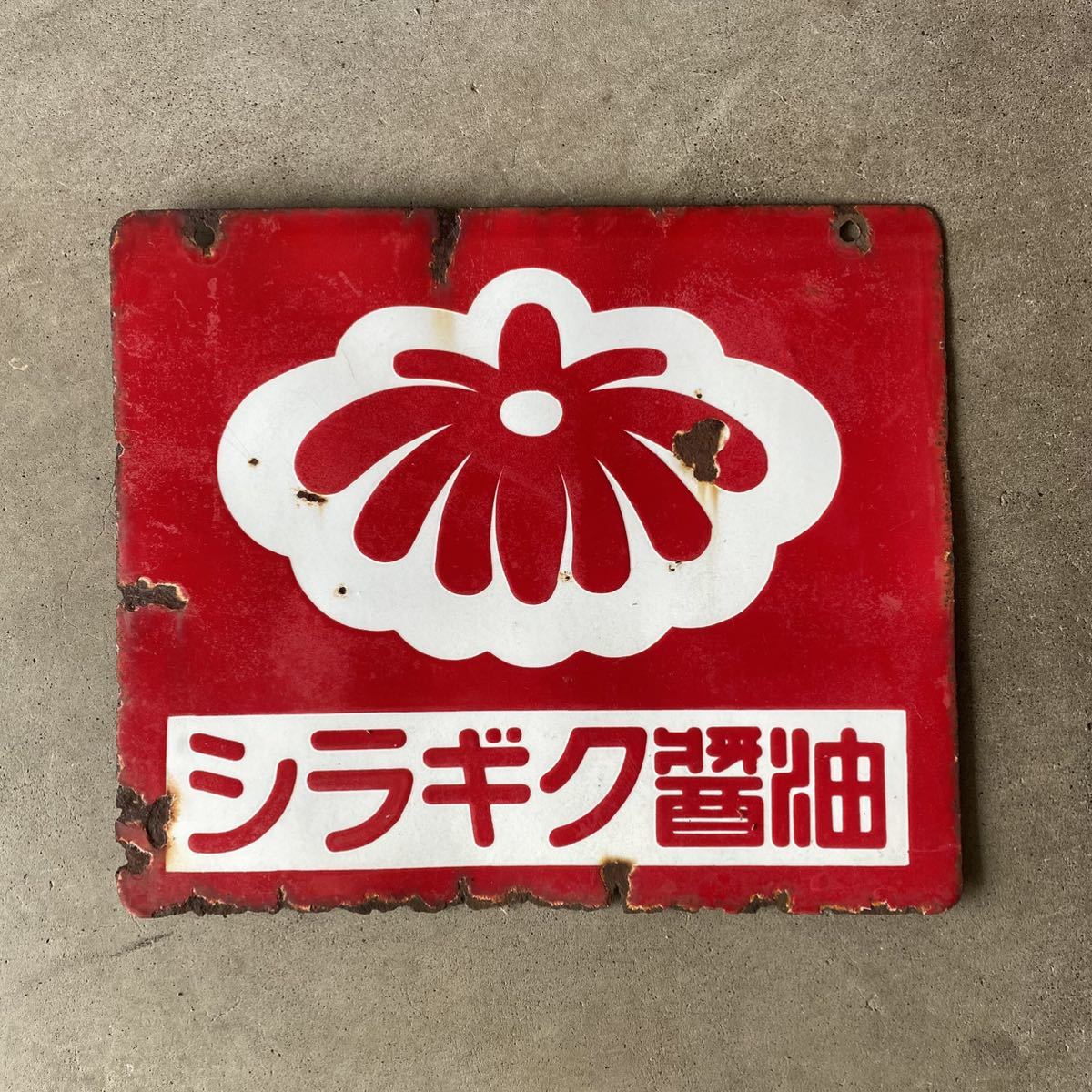 - 希少 ホーロー看板 シラギク醤油 両面 琺瑯 昭和レトロ