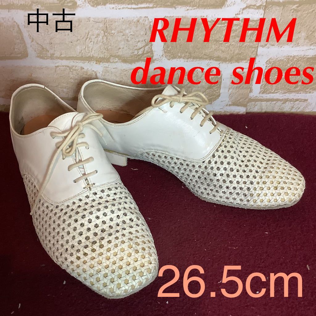 > 【売り切り!送料無料!】A-290 RHYTHM!ダンスシューズ!26.5cm!オフホワイト!メッシュ!通気性!趣味!ダンス!中古!