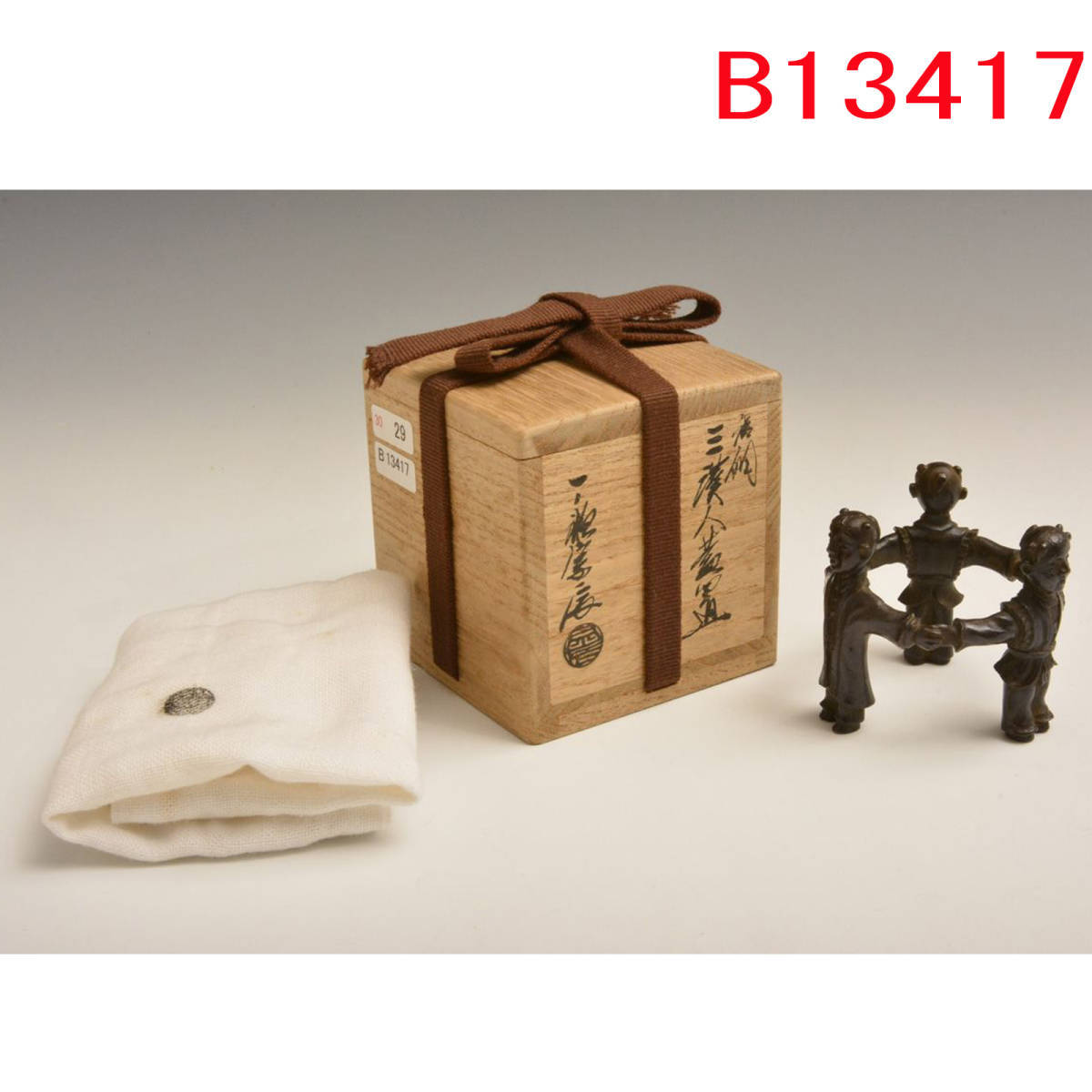 - B13417 一ノ瀬宗辰 唐銅三漢人蓋置:真作
