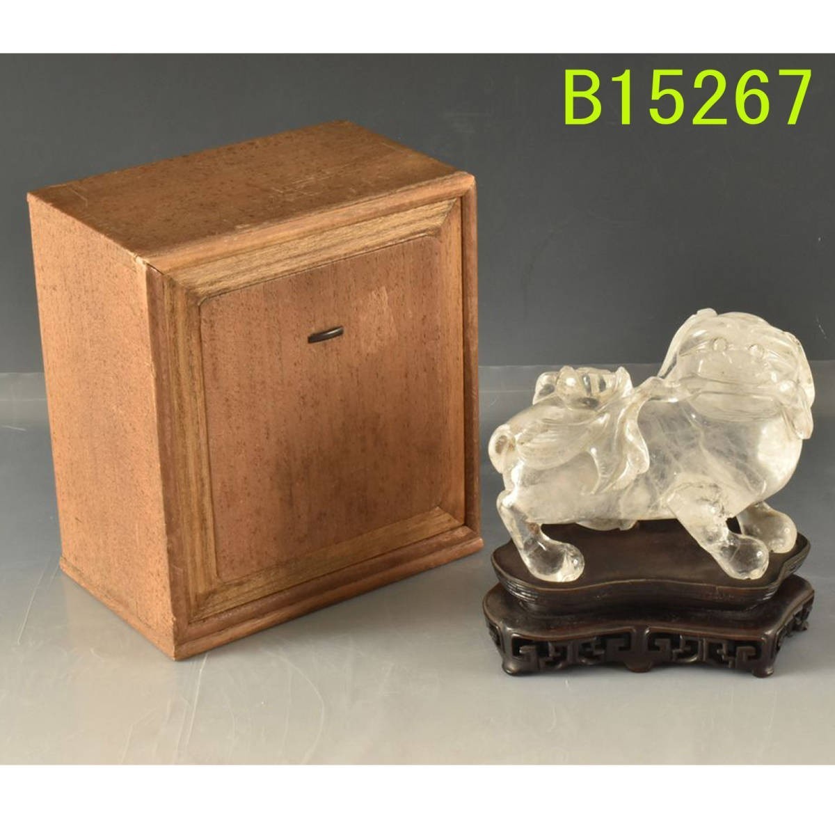 - B15267 獅子 水晶置物 本体1020g 台182g:真作