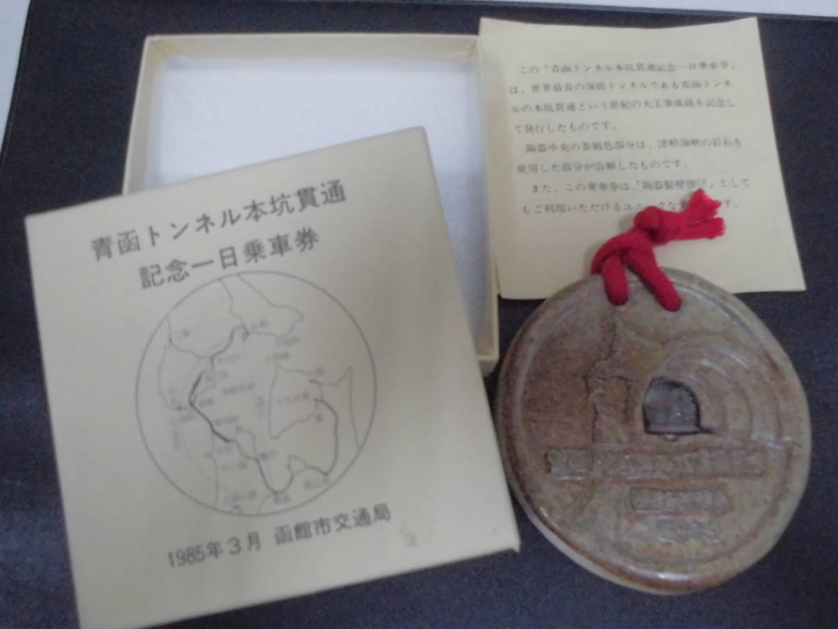 > ★送料無料★希少!日付未記入・未使用・1985年3月発売「青函トンネル本坑貫通記念一日乗車券」陶器製 函館市交通局(中島R5保管)