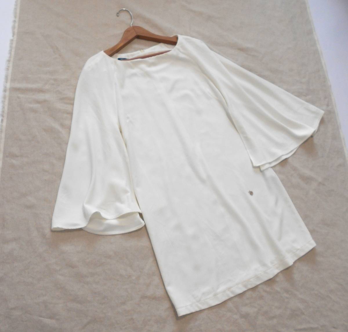 - 送料込み! RINASCIMENTO リナシメント ホワイト スリットスリーブ ゆったり とろみ ブラウス ( イタリア製 ゴールド ロゴプレート 洗える
