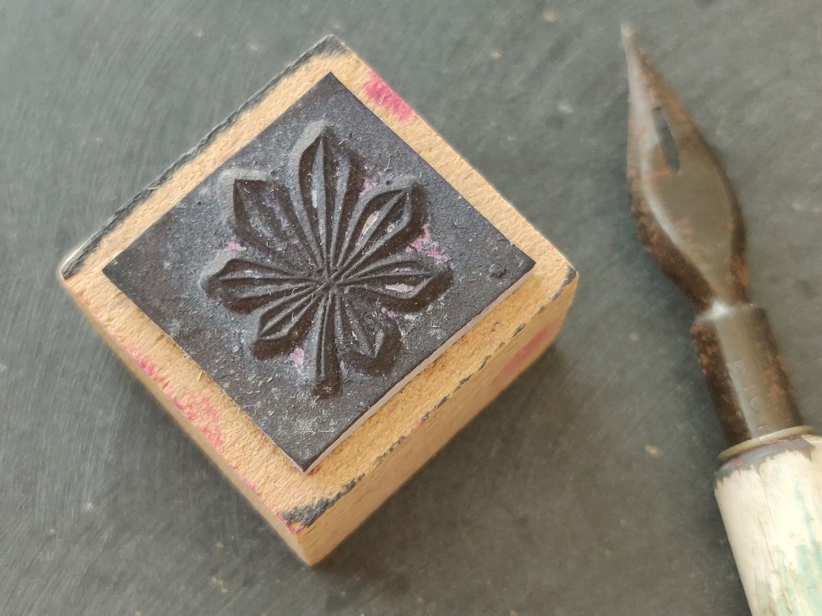 - ミニ 木の葉 トチノキ ホオノキ 植物 フランス アンティーク スタンプ ヴィンテージ はんこ 図鑑 イラスト フレンチ レトロ
