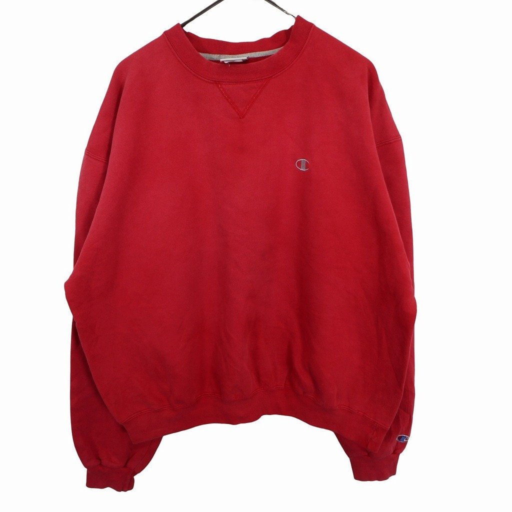 - Champion チャンピオン ワンポイントロゴスウェット 刺繍 Vガゼット 丸首 トレーナー レッド (メンズ L) 中古 古着 O3473