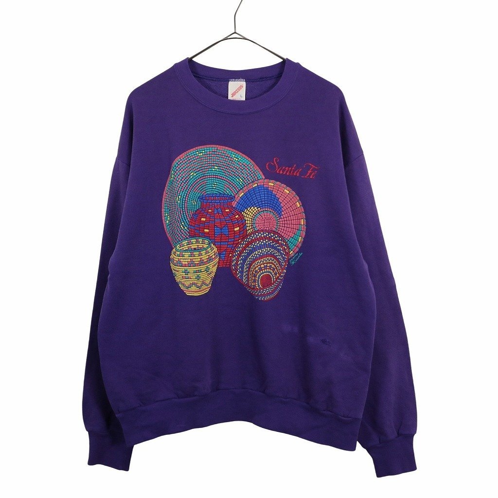 > 90年代 USA製 JERZEES ジャージーズ Santa Fe スウェット 刺繍 カレッジ プリント 丸首 トレーナー パープル (メンズ L) 中古 古着 O3548