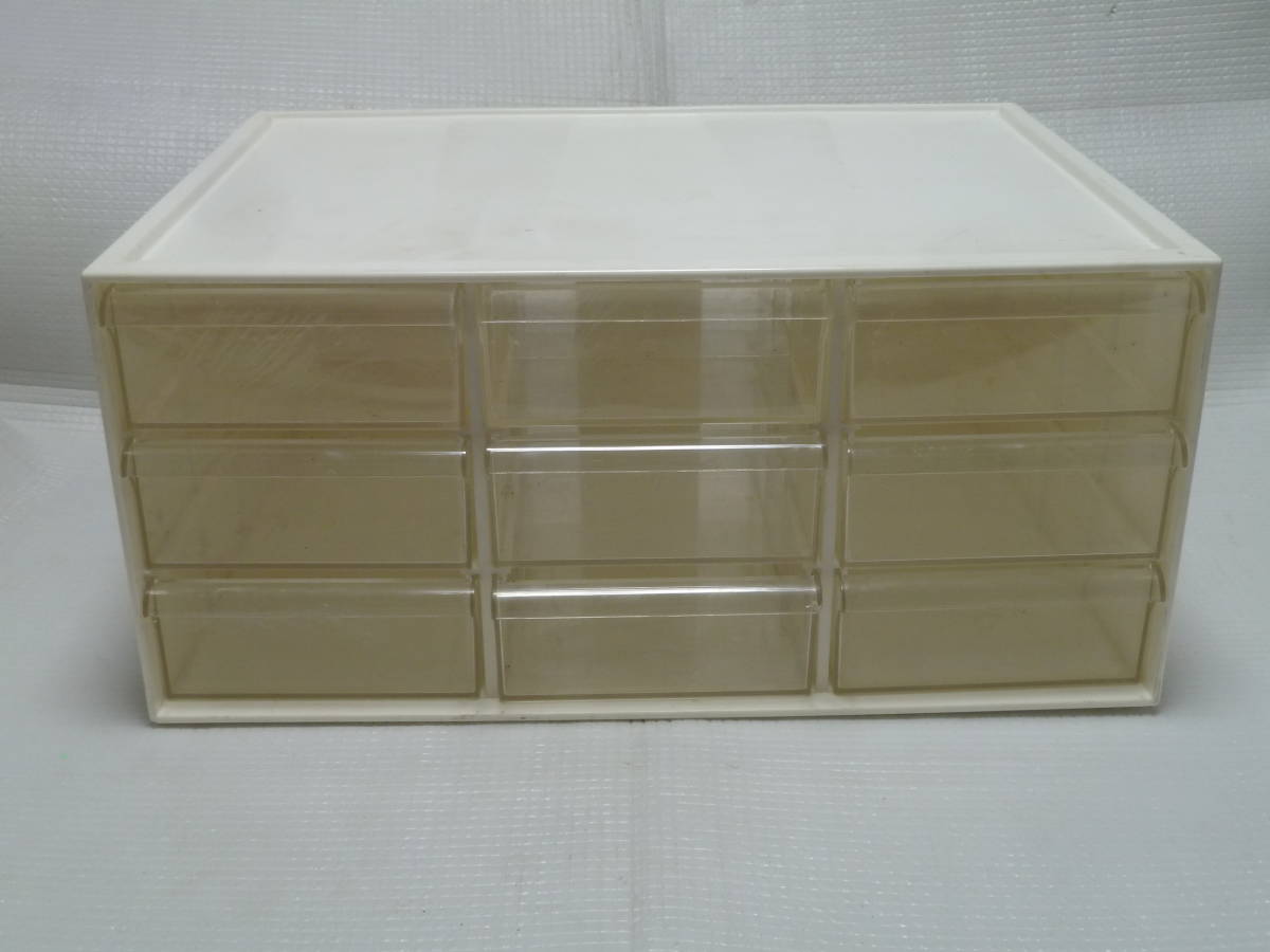 - 【ダメージ目立つ】 卓上小物ケース 小物入れ 引出し 収納ボックス プラスチック 3×3段 37cm×28cm×17cm 白色