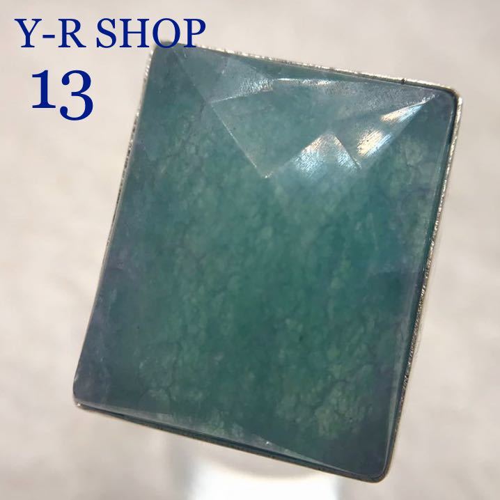 - 天然石★13号★ブルーグリーンクォーツのエスニックリング★レディース指輪シルバー 925刻印カラーストーン インド新品Y-RSHOP卸売宝石