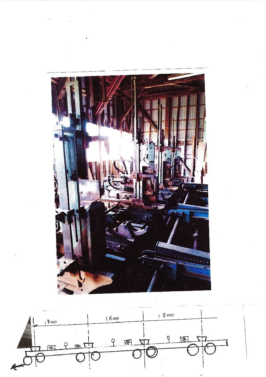 - c3A【山形イイ長050928】製材機 1100型 大井 送材車4本立 木廻し押え付 原本送り・ライブローラー別売り 車上渡し