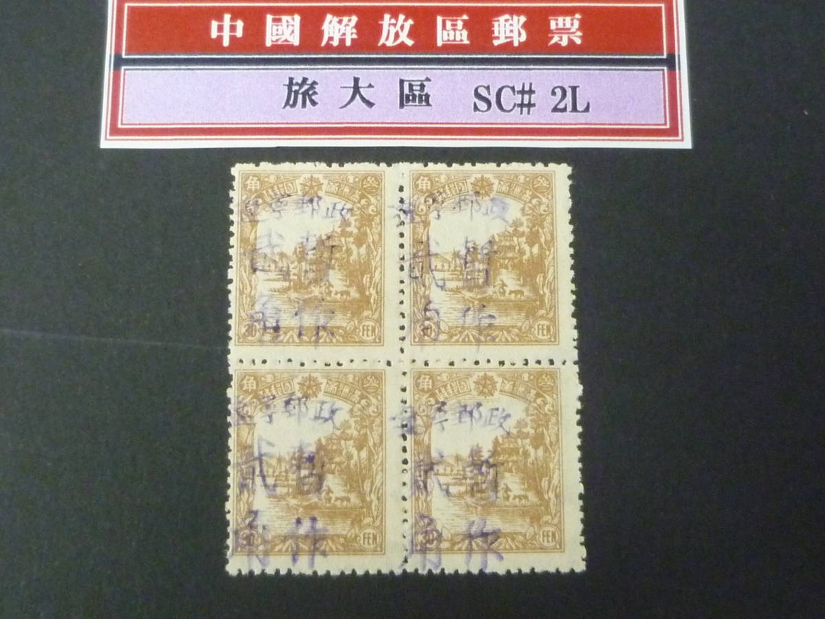 - 24 A №4 中国解放区切手 旅大区 1946年 SC#2L1 遼寧郵政手蓋改値 満州切手加刷 20f/30f 田型 未使用NH・VF 【SC評価 $300】