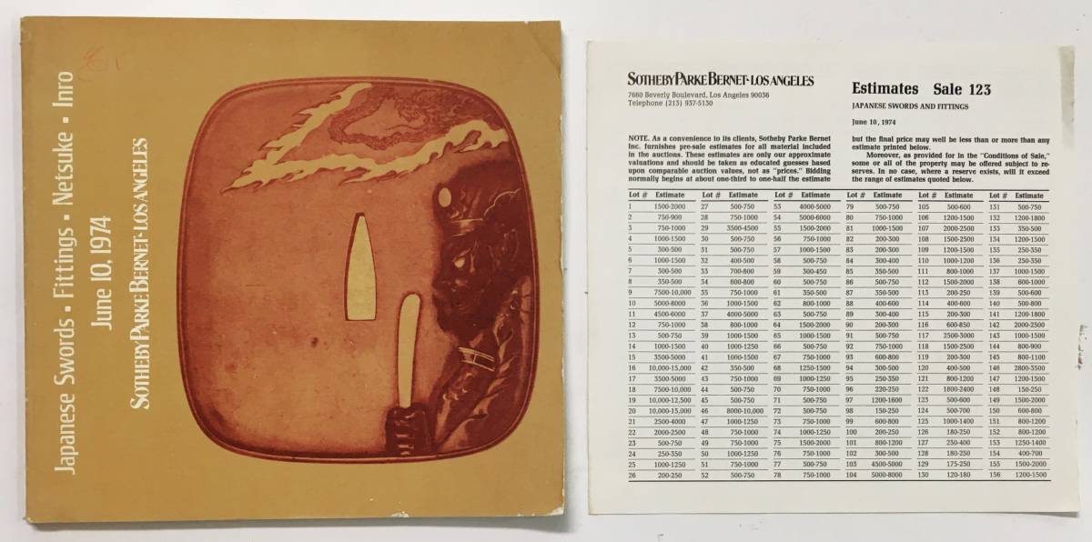 - サザビーズ 日本刀 刀装具 根付 印籠 オークションカタログ「Japanese Swords・Fittings・Netsuke・Inro」[1974 Sotheby Parke Bernet LA]