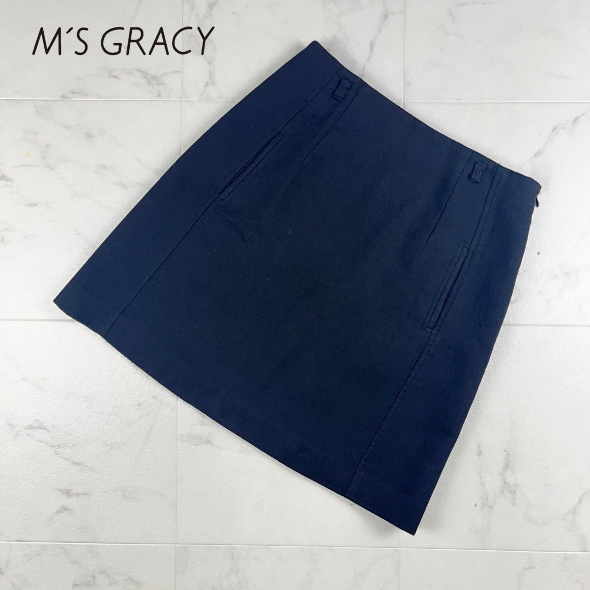 > 美品 M'S GRACY エムズグレイシー ウール混 フレアスカート 膝丈 裏地あり レディース ボトムス 黒 ブラック サイズ38*HC490