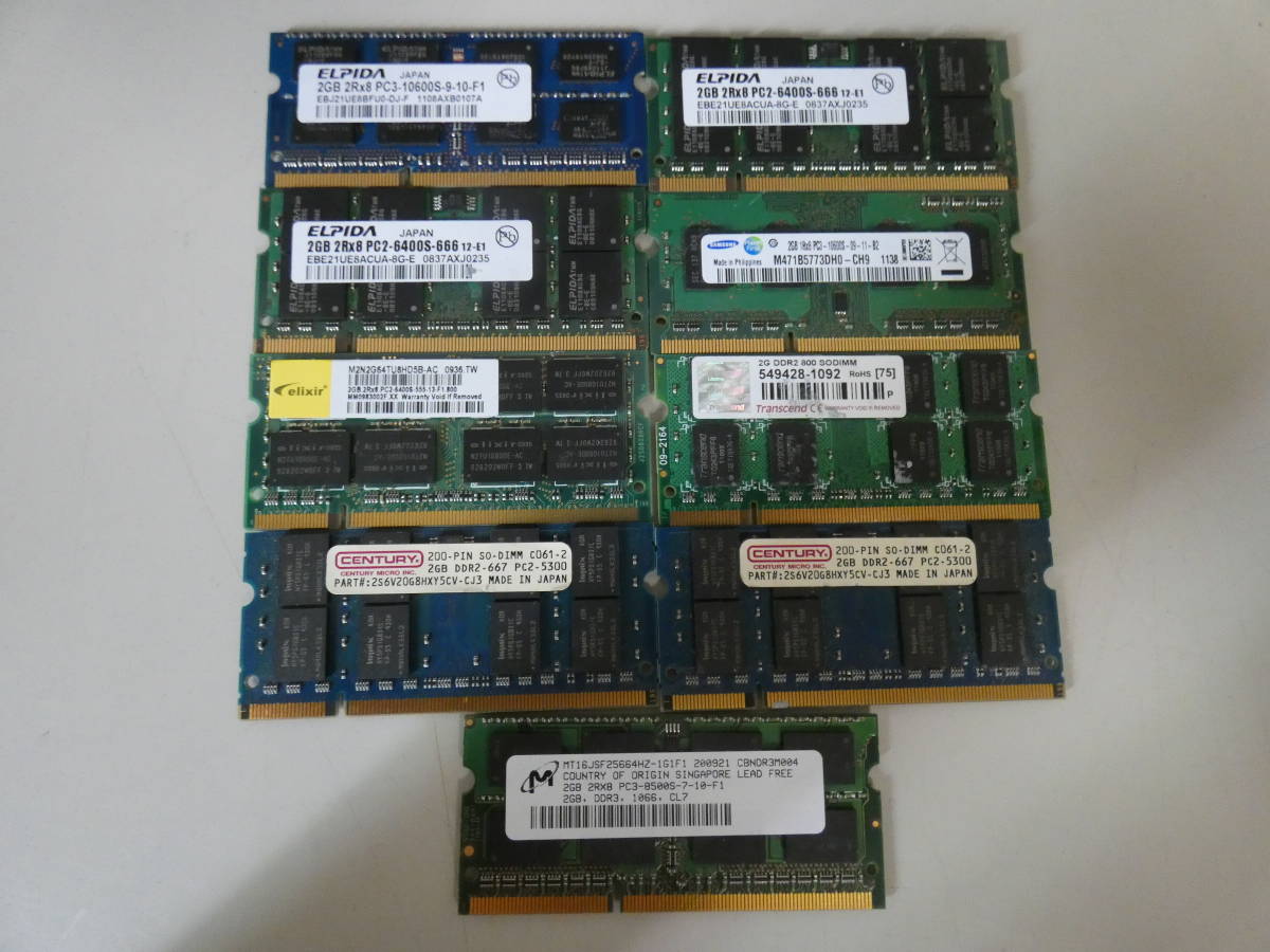 > ★ELPIDA/SAMSUNG/CENTURY/elixir メモリー 2G 9枚セット 2Rx8 PC2-6400S/1Rx8 PC3-10600Sなど M03566