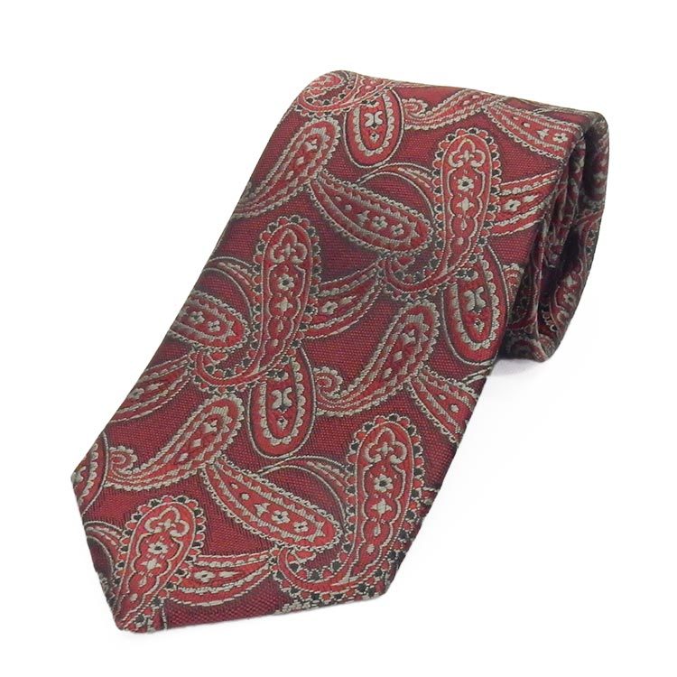 - 日本製 ネクタイ 甲州織 ワイン×グレー/ペイズリー 帝人 テトロン糸使用 洗濯機OK メール便OK BUN-PZ11
