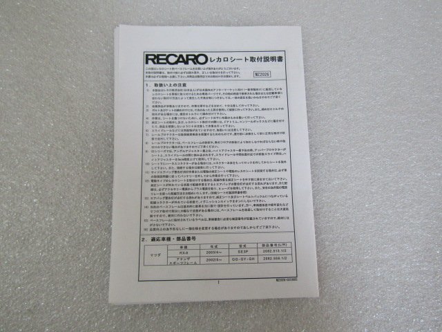- レカロ RECARO シート取付説明書 MZ2026 / RX-8 アテンザなど