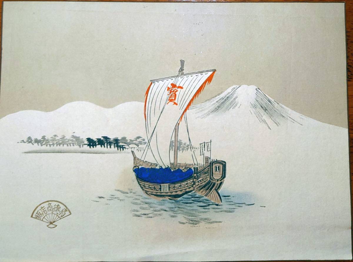 - f23100561〇木版画 宝船 七福神が乗る帆船 新年をあらわす季語〇和本古書古文書