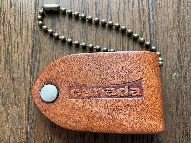 > canada カナダ 本革 キーホルダー ループ スナップ ラベル ボールチェーン 横4cm 縦7cm 革厚味3mm 11g 未使用 送料無料 底値