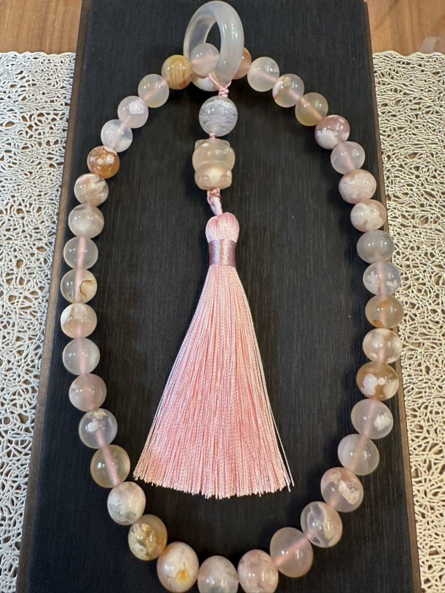 - K-330 瑪瑙 桜瑪瑙 アゲート 数珠 念珠 仏具 風水 お守り