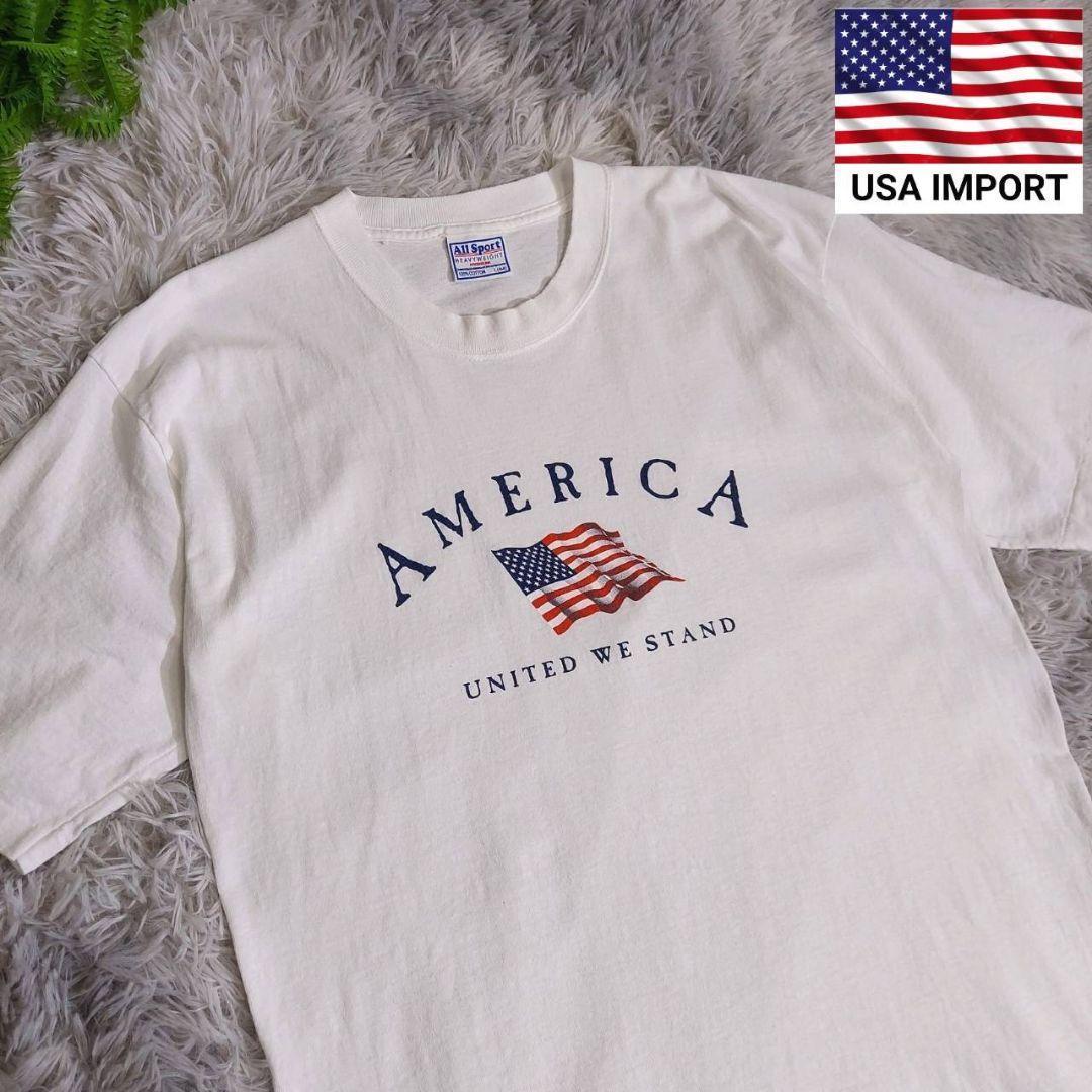 > All Sport 丸胴&シングルステッチ・星条旗プリントTシャツ白 表記サイズL 80s〜90s アメリカ古着67735