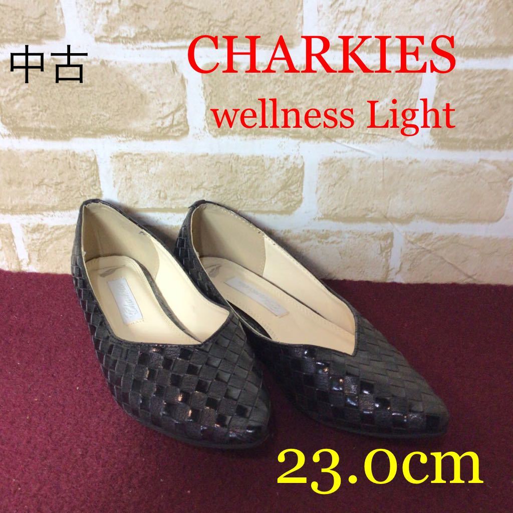 - 【売り切り!送料無料!】A-40 CHARKIES!パンプス!23.0!黒!ブラック!ビジネス!仕事!冠婚葬祭!格子柄!中古
