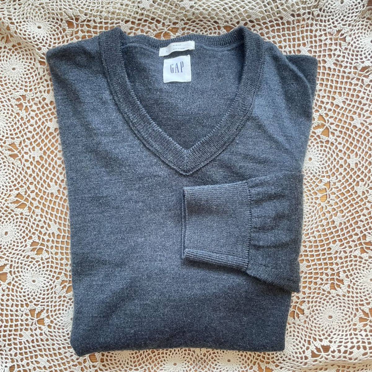 - GAP チャコールグレー メリノウール100% Vネック ニット セーター L