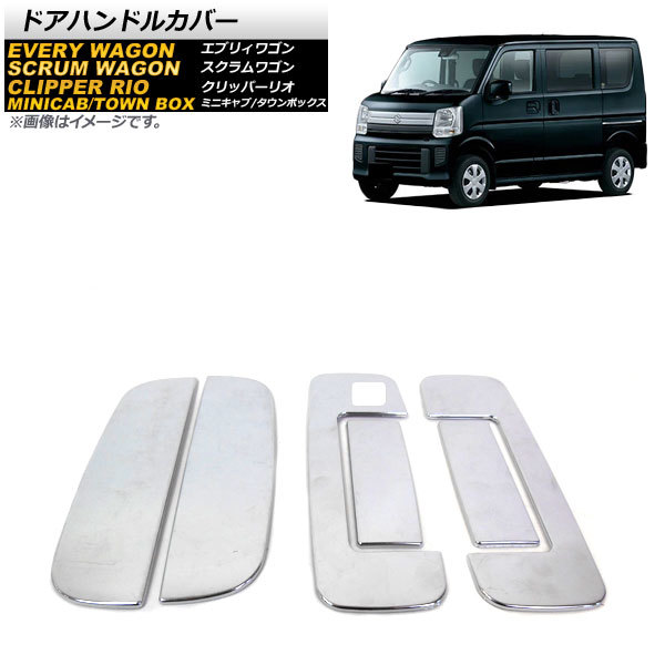 > ドアハンドルカバー マツダ スクラムワゴン/スクラムバン DG17W DG17V 2015年03月~ 鏡面シルバー 鍵穴×1 ABS製 後部右側穴あき