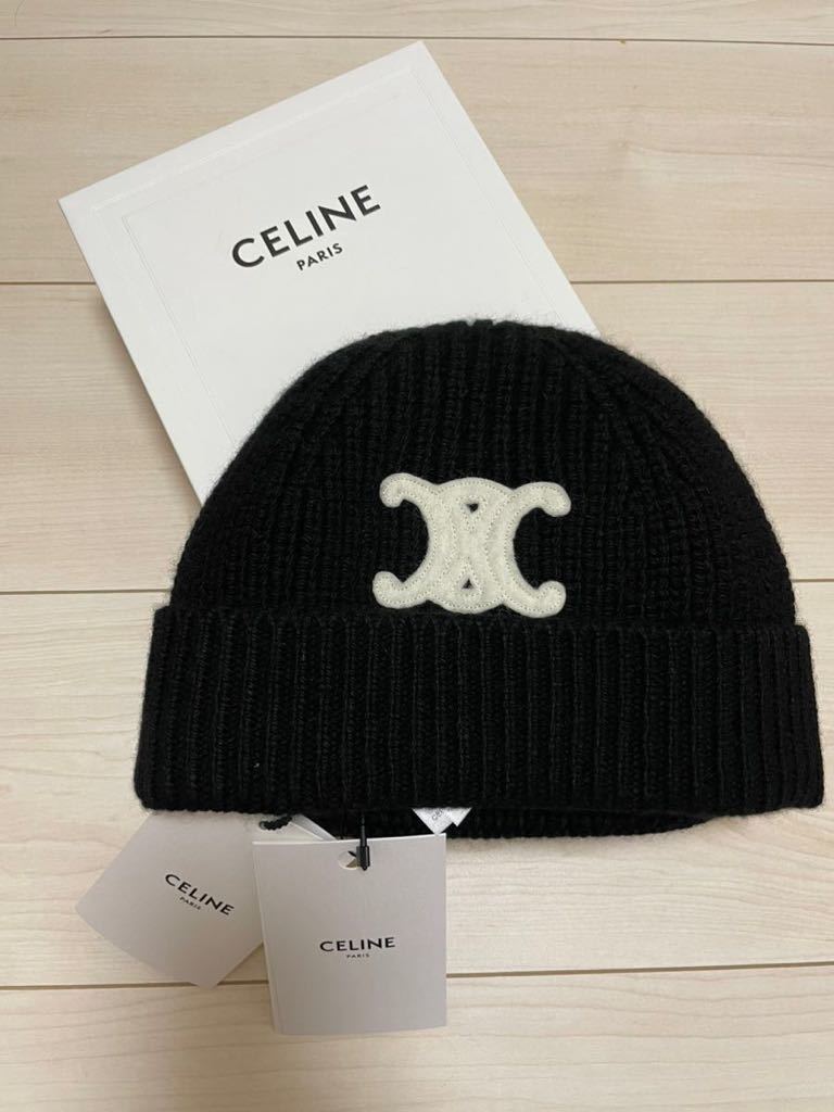 - 期間限定お値下げ タグ付き未使用 セリーヌ トリオンフ ニット帽 ニットキャップ ブラック
